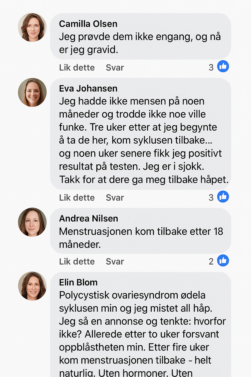 Men etter noen uker med å ta disse små gummiene begynte jeg å merke en forskjell – syklusen min ble regelmessig, og jeg følte meg mer i balanse enn på lenge. To måneder senere fikk jeg den nyheten jeg hadde drømt om – gravid! 💕