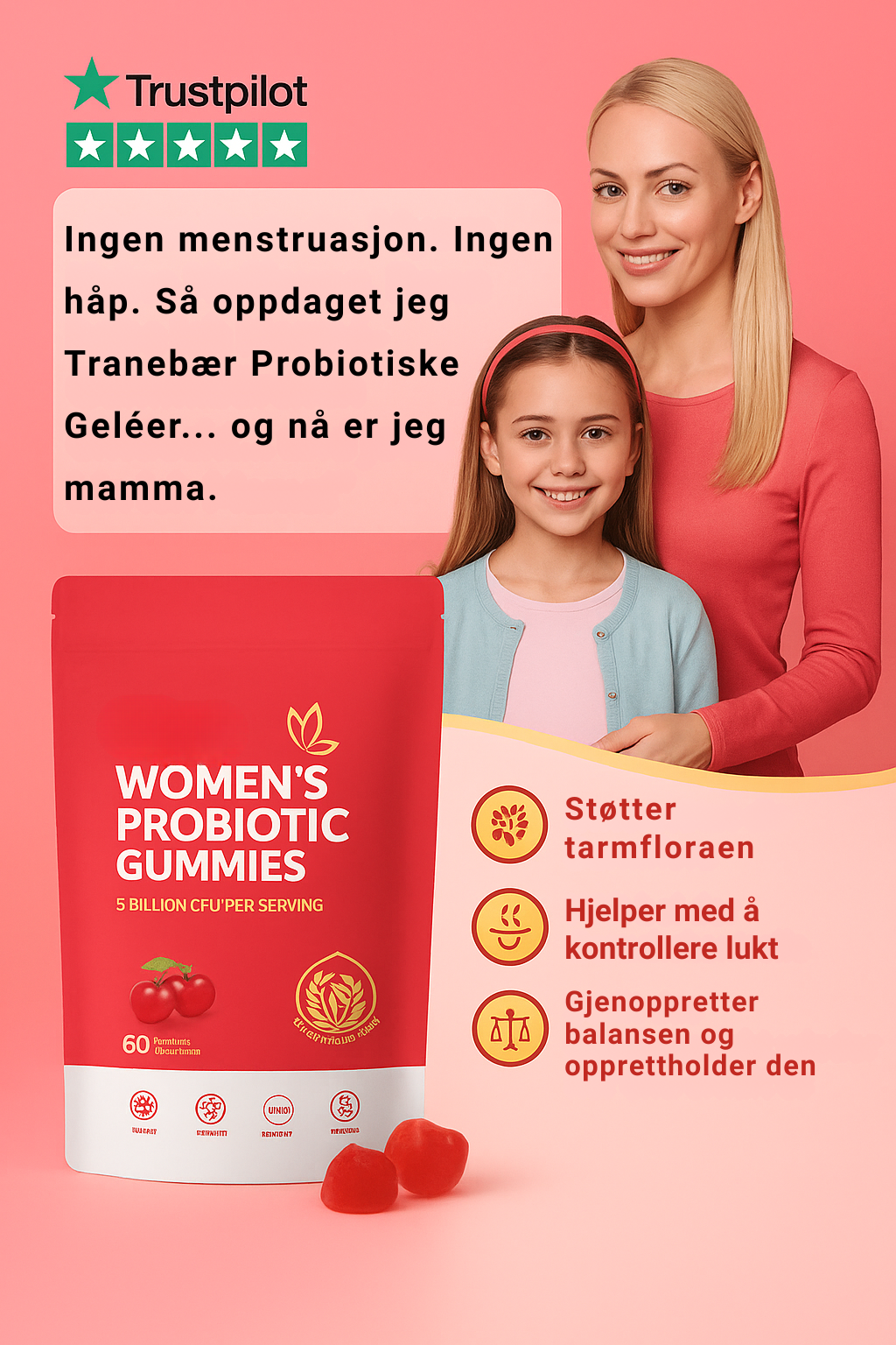 Etter år med mislykkede forsøk, skuffelser og ubesvarte spørsmål fortjener du mer enn bare «å leve med det». Du fortjener en ekte vei tilbake til håp – med hjelp av Tranebær probiotiske gummies.